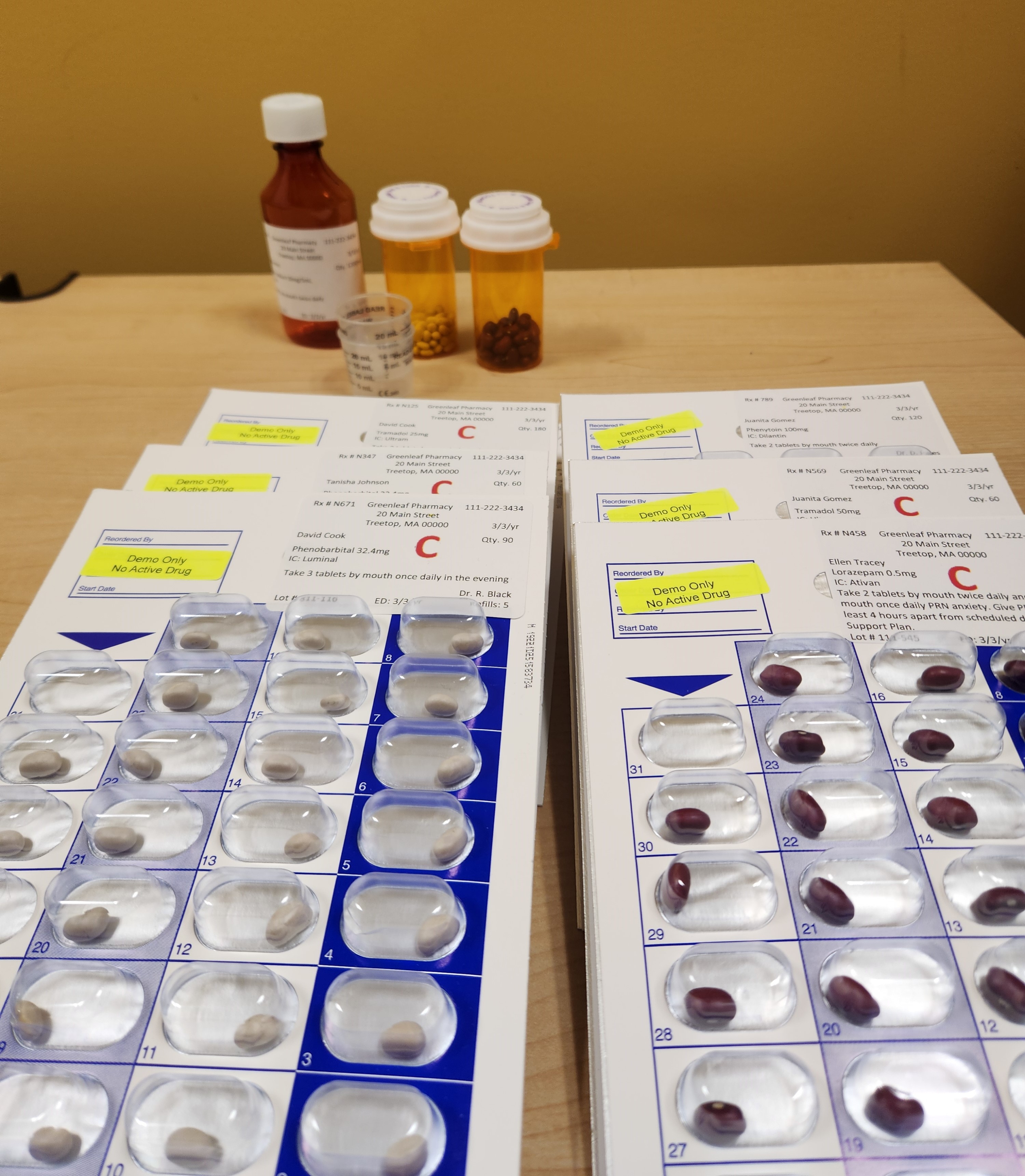 The MAP Trainer will also need complete sets of mock blister-packaged countable “medications.” Complete sets can be ordered at cost (must pay shipping and handling) through UMass Chan Medical School (ordering link tbd by 11/17).
